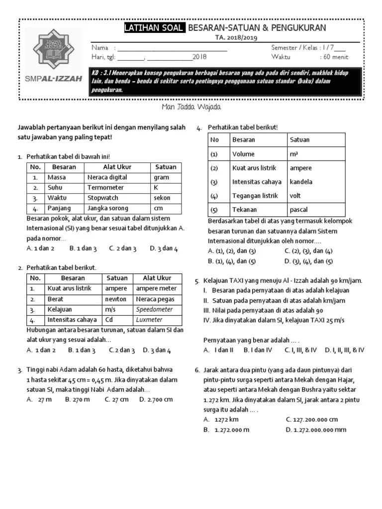 Mengukur adalah membandingkan nilai besaran yang diukur dengan alat ukur yang sesuai. Contoh soal dan jawabannya bab 1 objek ipa dan pengamatannya (ipa kelas vii smp/mts). Jadi, lamanya adi berlari adalah 206 detik. Diameter adalah termasuk besaran panjang seperti halnya lebar, tinggi, tebal, . Pada soal penguasaan materi 1.1 tersebut terdapat soal untuk.