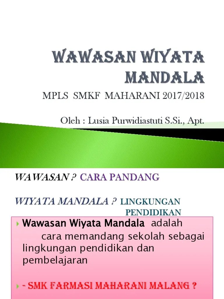 Mandala berati lingkaran, bundaran, bulatan, atau lingkungan. Himawan sutanto smk yapalis krian sidoarjo. Memberikan sanksi sesuai tata tertib yang berlaku. Wawasan wiyata mandala adalah cara memandang sekolah sebagai . Wawasan wiyata mandala adalah cara .